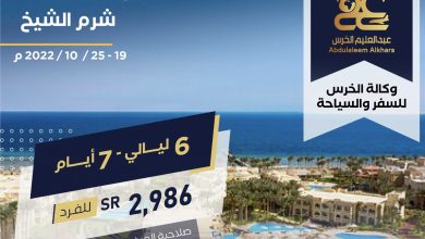 وكالة الخرس للسفر والسياحة شرم الشيخ الذهاب 19/10/2022مطار الدمام العودة 25/10/2022 مطار شرم الشيخ* مدة الرحلة 7 أيام التكلفة :…