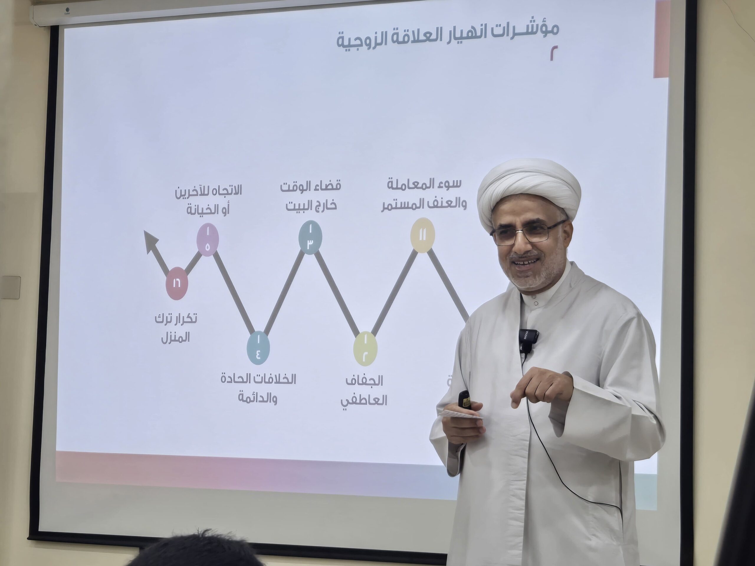 جاء ذلك في محاضرته “كيف تنقذ زواجك من الانهيار”التي قدمها في مركز البيت السعيد بصفوى، مساء الأربعاء وسط حضور ٣٢ شخصاً من الأزواج والزوجات.