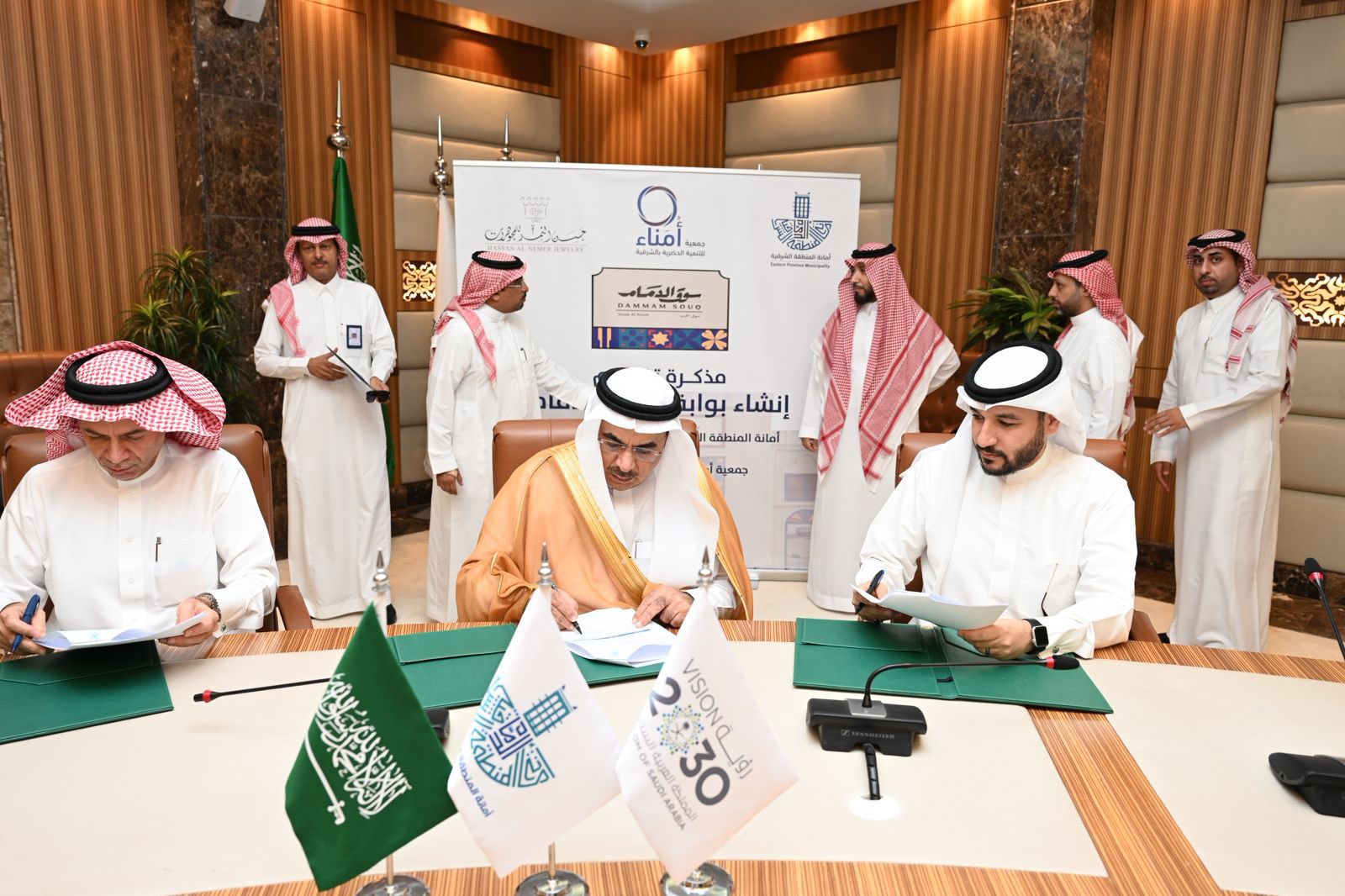 وقّعت أمانة المنطقة الشرقية، ممثّلةً بمعالي المهندس فهد الجبير، مذكرة شراكة مجتمعية مع شركة “حسن النمر وشريكه”، ويمثلها الرئيس التنفيذي الأستاذ حسن بن عبدالمحسن النمر، وذلك بالتنسيق مع جمعية “أمناء للتنمية الحضرية”، ويمثلها رئيس مجلس الإدارة الأستاذ سالم بالحمر، لإنشاء بوابة رئيسية لسوق الدمام بتصميم معماري مستوحى من هوية الساحل الشرقي.