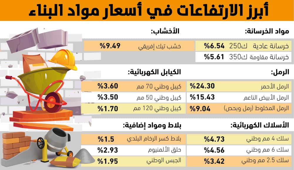 أبرز الارتفاعات في أسعار مواد البناء: