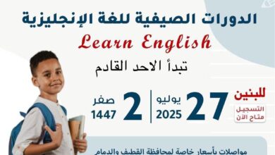 التسجيل مستمر لدورات اللغة الإنجليزية حضوري للبنين بمعهد نون الآفاق بسيهات للإجازة الصيفية ٢٠٢٥م: الدورة الثانية الاحد القادم ٢٧ يوليو…