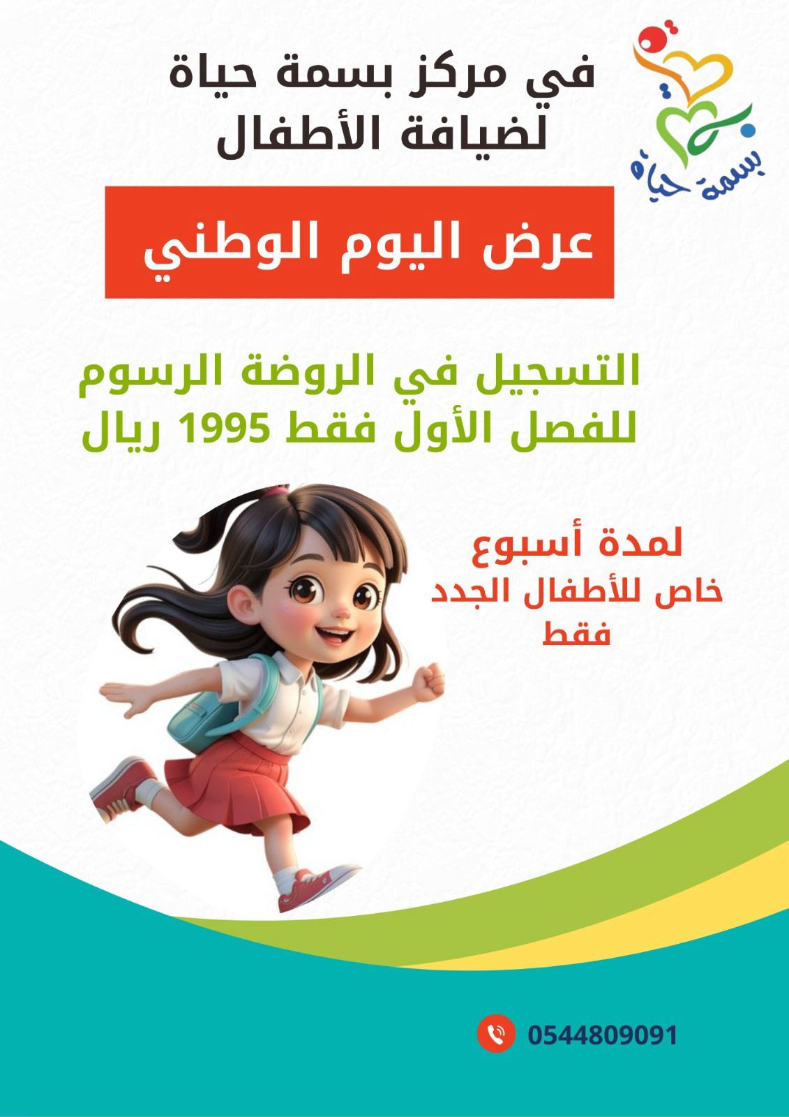 يعلن مركز بسمة حياة لضيافة الاطفال بمناسبة اليوم الوطني
