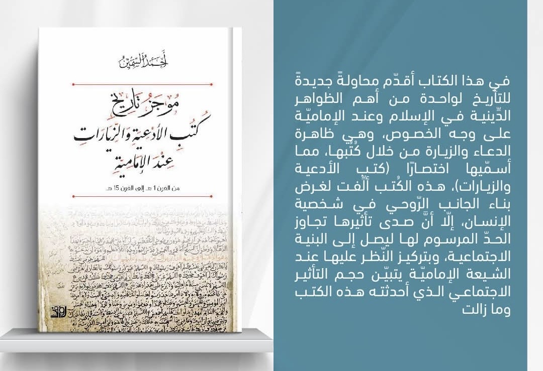 شهدت المكتبة العلمية الدينية، يوم أمس، صدور كتاب جديد للباحث الشيخ أحمد السمين بعنوان: «موجز تاريخ كتب الأدعية والزيارات عند الإمامية: من القرن الأول الهجري حتى القرن الخامس عشر».