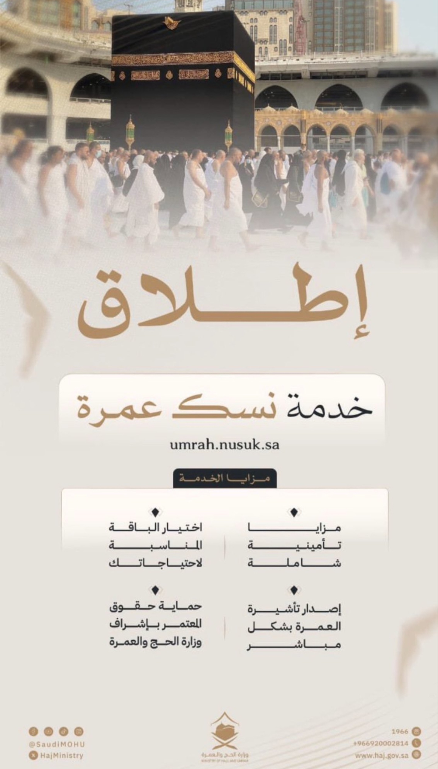 أعلنت وزارة الحج والعمرة عن إطلاق مبادرة “العمرة المباشرة” من خلال خدمة “نسك عمرة”، التي تتيح للراغبين في أداء مناسك العمرة التقديم بشكل مباشر عبر المنصات الإلكترونية المعتمدة، دون الحاجة للارتباط بمكاتب خارجية.