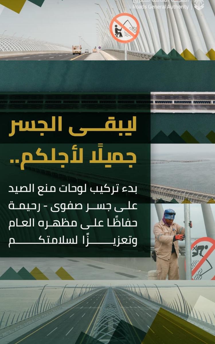 أعلنت الهيئة العامة للطرق عن بدء تركيب لوحات توعوية لمنع الصيد على جسر صفوى – رحيمة، في خطوة تهدف إلى الحفاظ على المظهر العام للجسر وتعزيز سلامة مستخدميه.