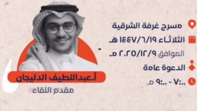 بشائر: الدمام تنطلق في التاسع من ديسمبر فعاليات مشروع «الشرقية تقرأ» تحت شعار «صدى القراءة»، وذلك على مسرح غرفة الشرقية…