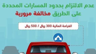 المرور السعودي: عدم الالتزام بالمسارات المحددة مخالفة مرورية وغرامتها تصل إلى 500 ريال