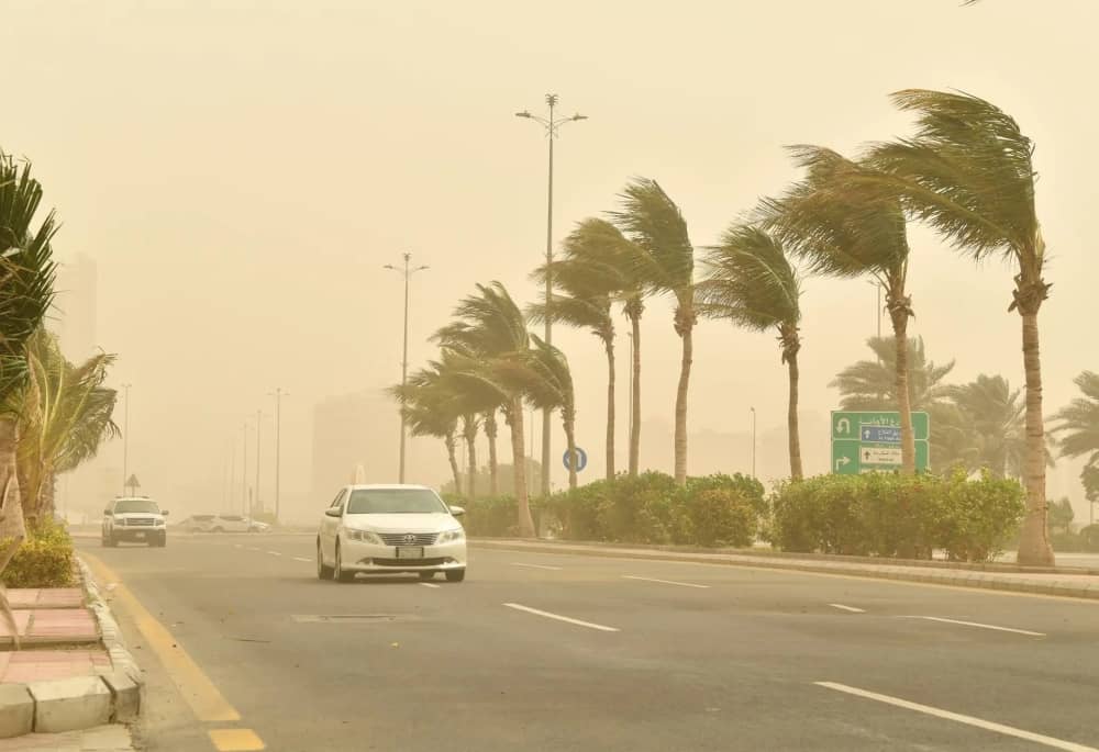 ويصاحب الأتربة رياح نشطة، وتدني مدى الرؤية الأفقية (3 – 5) كيلومترات.