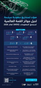 أعلنت القمة العالمية لمجتمع المعلومات (WSIS) لعام 2026، عن تشريح عدد من المشاريع السعودية لنيل جائزتها هذا العام.
