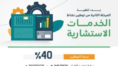 أعلنت وزارة الموارد البشرية والتنمية الاجتماعية، دخول المرحلة الثانية من قرار توطين مهن الخدمات الاستشارية حيز التنفيذ بنسبة 40%، وذلك…