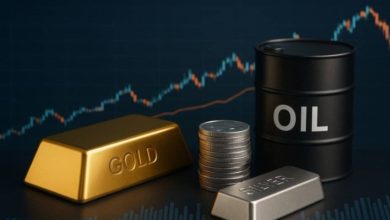 تراجع العقود الآجلة للأسهم وارتفاع حاد في أسعار النفط والذهب