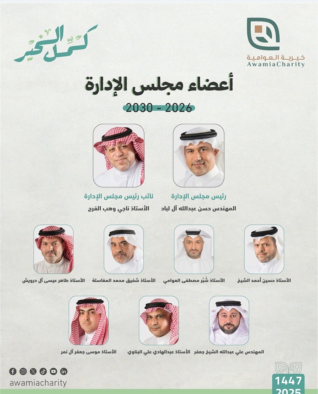 اللباد رئيسًا لمجلس إدارة جمعية العوامية للدورة الجديدة 2026 – 2030م