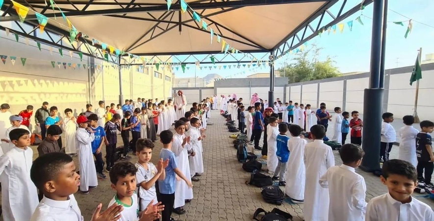 الفارق الزمني بين الاصطفاف الصباحي بين الدوامين الصيفي والشتوي: 45 دقيقة