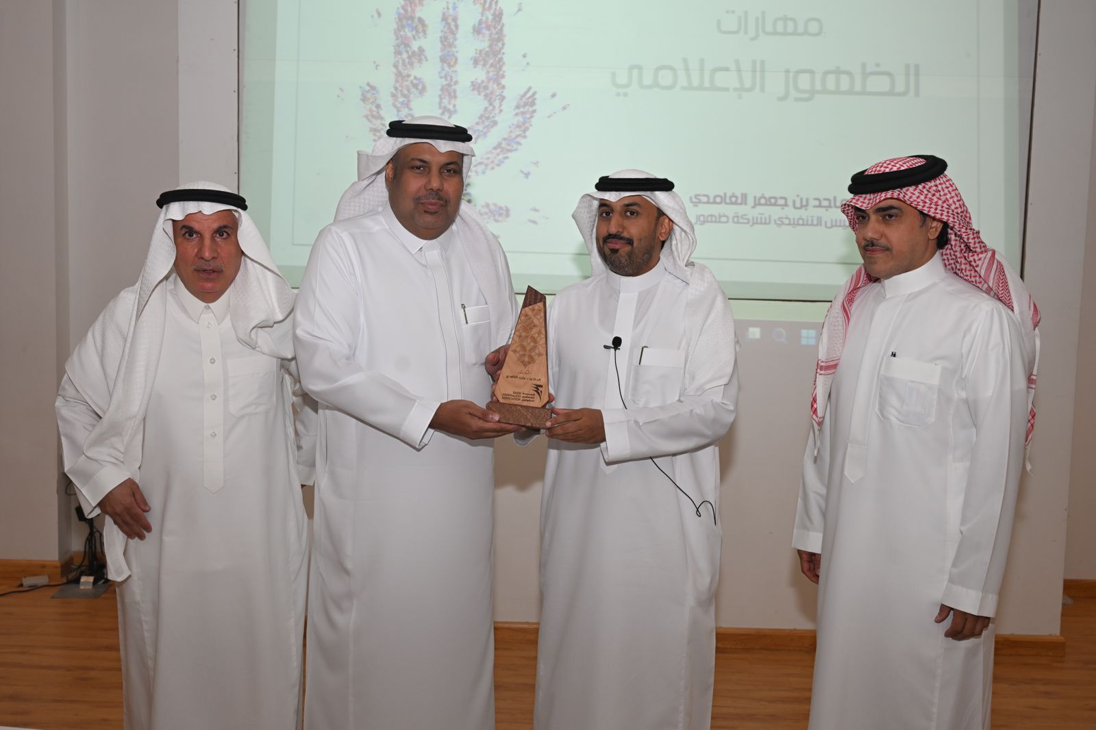 وفي ختام الورشة، قدّم الشهاب درع فرع الهيئة للمحاضر الدكتور ماجد الغامدي تقديرًا لمساهمته في إثراء المعرفة والمهارات الإعلامية لدى المشاركين.