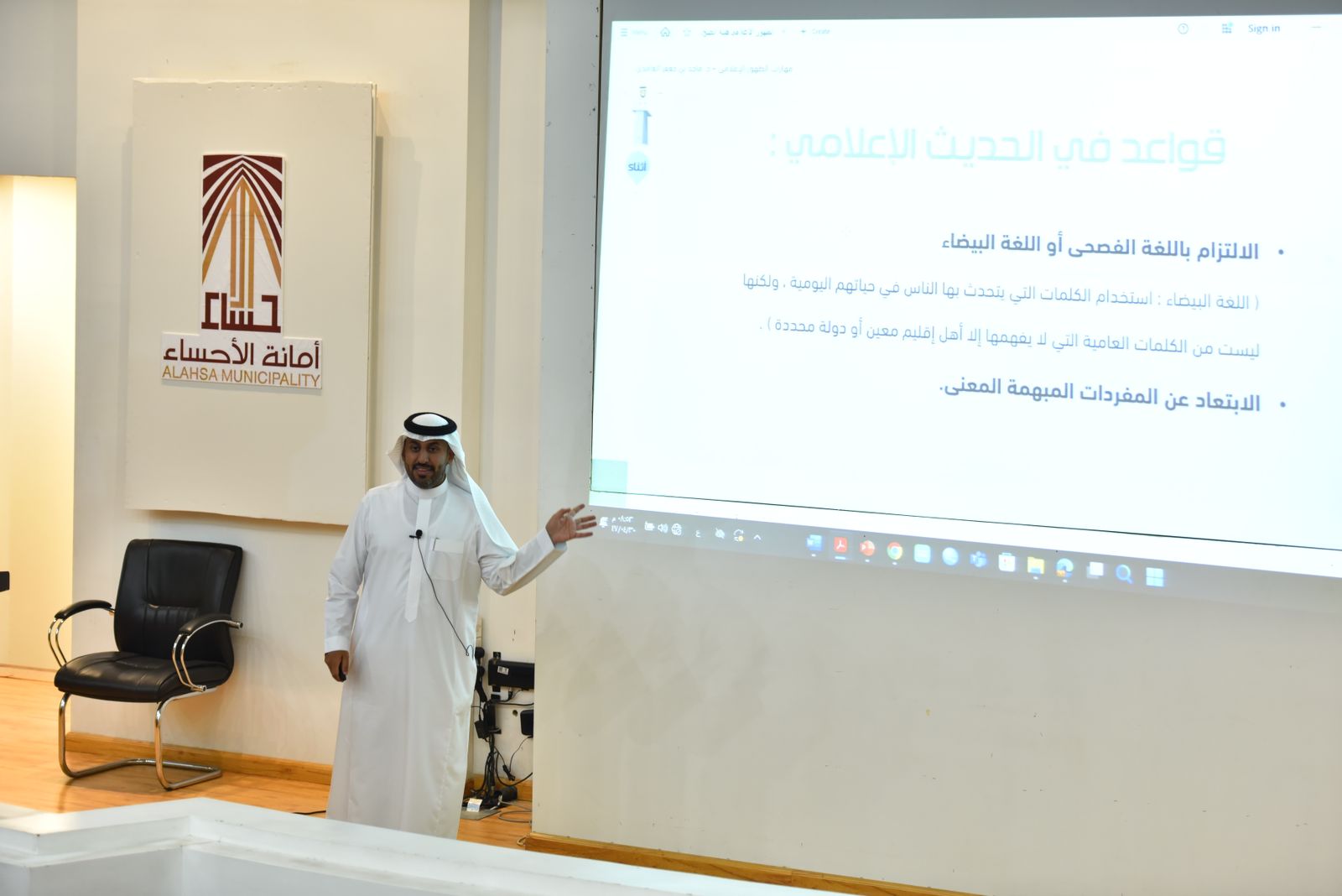 وأوضح أن الصورة الذهنية هي مجموعة الإدراكات التي يكونها الفرد حول الأشياء، مبينًا أن الصورة الذهنية للمنظمات تمثل تفسير الجمهور للمنظمة ومنتجاتها وخدماتها. كما شدّد على أهمية الالتزام باللغة العربية الفصحى أو ما يُعرف بـ “اللغة البيضاء”، وهي اللغة المفهومة لجميع العرب، مع تجنّب الألفاظ المحلية أو الغامضة.