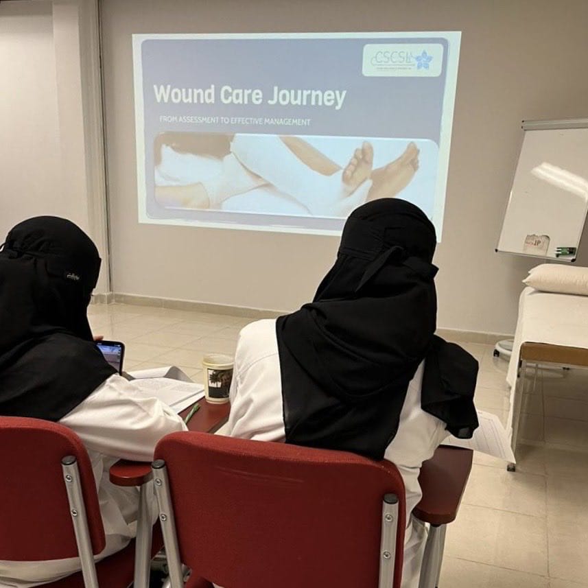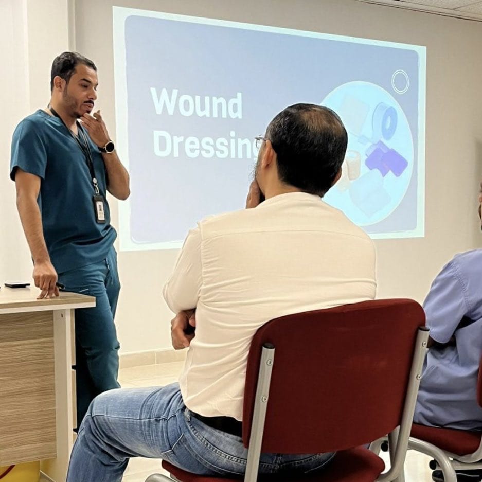 وشمل البرنامج جانبًا عمليًا عبر محاكاة واقعية لحالات سريرية، بهدف تحسين مهارات التعامل مع الجروح المزمنة والمعقدة مثل قرح القدم السكري، تقرحات الفراش، والجروح الجراحية المتأخرة في الالتئام، وهي من أكثر الحالات شيوعًا في غرف الرعاية السريرية.