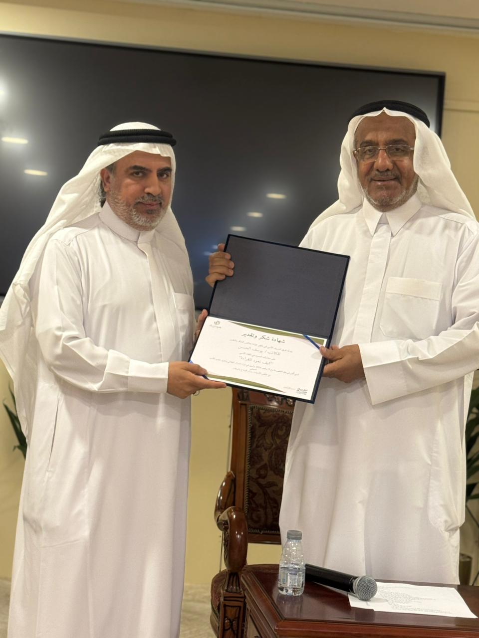 وفي ختام المحاضرة قدم مديرها القاص هاني الحجي شهادة شكر وتقدير لضيفه الحسن، والتقطت الصور التذكارية.