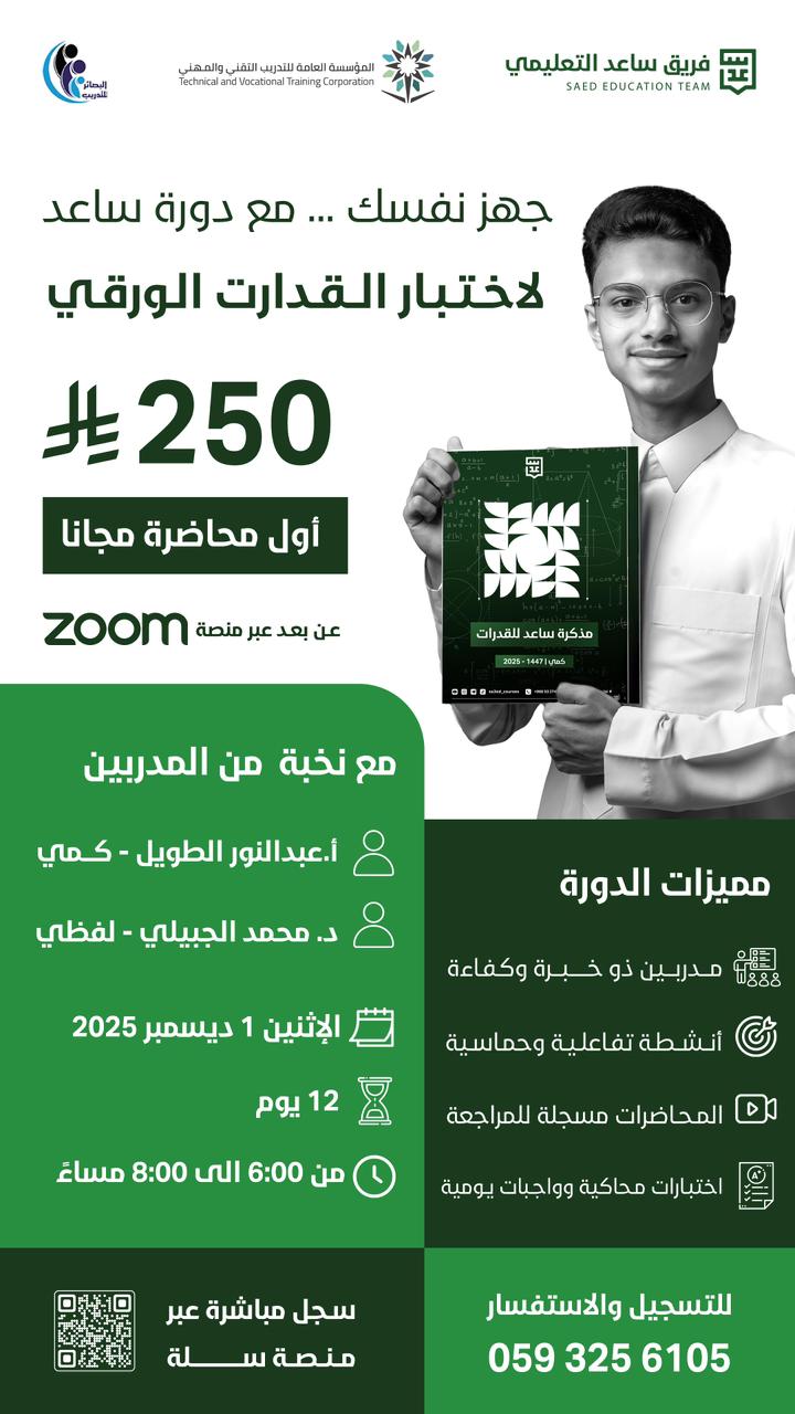 سجّل الآن في أقوى دورة للاستعداد لاختبار القدرات الورقي!