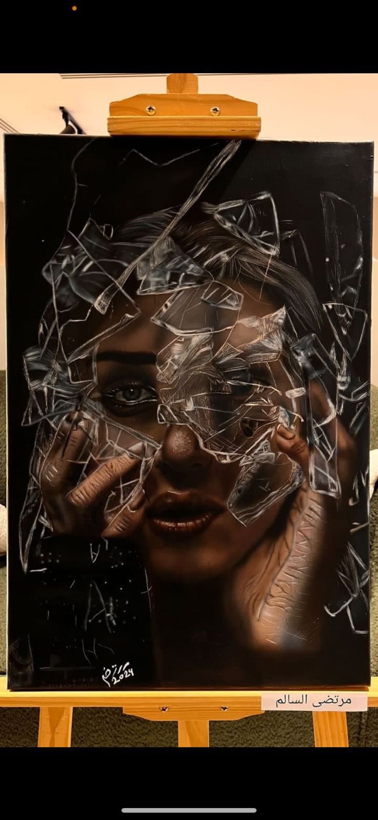 كلغز يحتاج إلى إعمال فكر، وكقصص صامتة مليئة بالتفاصيل المدهشة والأحداث الغامضة تتحدث باللون والشكل والملامح، تطل لوحاته على جدران المعارض فتهبها سحرًا، كل منها كشيفرة دافنشي يحتاج إلى استقبال بصري يستجلي معالمها وتضاربسها، ثم تأمل عميق وتفكيك حتى تصل إلى المعنى الكامن وراء اللوحة، وربما شاهدها كل متلق بخلفيته الثقافية والشعورية وتراكمه المعرفي فكانت اللوحة هي ذاتها روح المتلقي، والمتلقي هو انعكاس للوحات ذلك الشاب الأحسائي الذي نشأ على حب التشكيل، وخاض معارك التجريب، وتورطت يديه بملامسة كافة المواد، وتلطخت ببقع الألوان، حتى أضحى مرتضى السالم فنانًا يشار إليه بالبنان وتتصدر لوحاته واجهات المعارض التشكيلية، وتفوز بعضها بجوائز عالمية. يدهشك فنه، فالفن هو الريشة العملاقة تراقص الإحساس المرهف، فيتحدان لالتقاط أرق معاني الحياة، ويتعمقان في الشعور وفي فهم الأشياء والعلاقات، ويصهلان في ميدان اللوحات، ينثران الألوان، ويرسمان ملامح المعاني، تهتز الريشة، ويهتز الإحساس لينتج عن هذا الاهتزاز جمال بصري يلفت الأنظار. هكذا كان السالم امتزجت روحه بنكهة الألوان، منوعًا مناهج الرسم ما بين السوريالية والواقعية، ومترجمًا تجاربه الحياتية وتجارب المقربين إلى لوحات فنية مبهرة. امتطى ظهر ريشة حالمة، وواكب عصره مستخدمًا تقنيات متطورة لينفخ روح الجمال في إبداعاته، ولا سيما الريشة الهوائية. لا تكاد تهرب إلا لوحات قليلة لديه من ظاهرة الزجاج المكسور وشذراته المتكسرة والمتطايرة هنا وهناك، فما قصة التشظي لدى التشكيلي الأحسائي الشاب مرتضى السالم؟ هذا ما ستحاول الأسطر القادمة الخوض فيه والإجابة عليه عبر لقاء بشائري مسحور بالفن مأخوذ بالألوان.