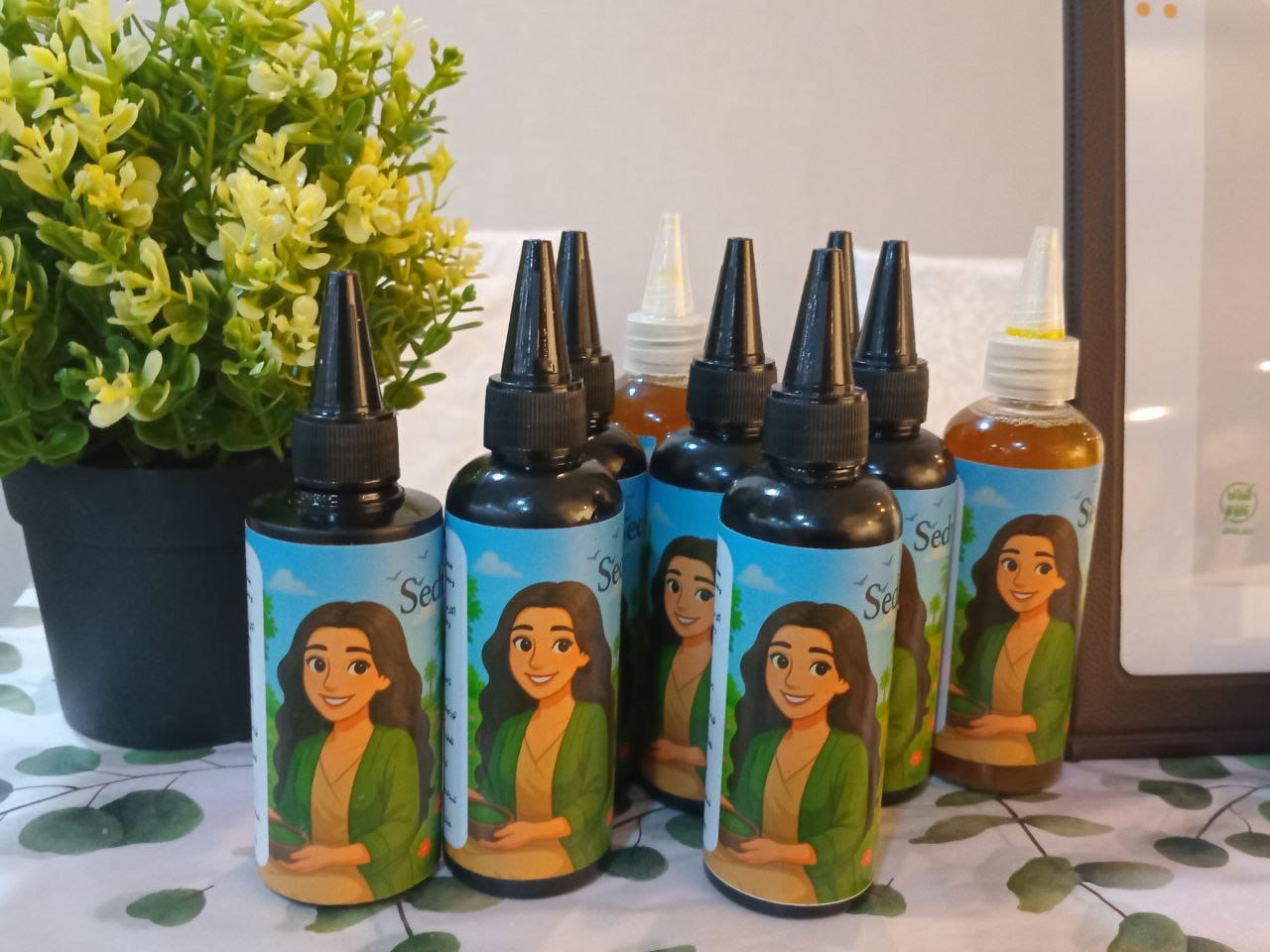 التقينا أثناء تجوالنا بين الأركان ببعض المواهب الشابة والمبتدئة أو العريقة وذات الخبرة العملية الممتدة، منهن شابة مبتدئة في ركن طباعة الأشكال ثلاثية الأبعاد، حيث كانت تقدم تصاميم مختلفة مطبوعة، وأوضحت بأنها بدأت في هذا المجال من وقت قريب لا يتخطى الشهرين، وقد استوردت آلة الطباعة من جمهورية الصين الشعبية، وهي تستطيع تحويل أي شكل لثلاثي أبعاد ثم طباعته، وتستخدم البلاستيك، وكاربوفايبر، ويمكن استخدام الحديد أيضًا، وهناك آلات خاصة لطباعة الريزن. وقد أنتجت بهذه الآلة فواصل للقرآن الكريم، وللكتب، وحوامل أقلام، وميداليات، ومجسمات، ومرايا، وألعاب متنوعة، ومغناطيسيات، وبكلات شعر. ومن ركن سيدرا تاتش التقينا بسيدة ذات خبرات عريقة عرفتنا على فكرة الركن وهو استخراج الزيوت الطبيعية من البذور، عن طريق عصرها على البارد، وتقوم على هذه الزيوت صناعة عدة منتجات بعضها مختص في العناية بالشعر مثل زيت سيدرا للشعر الذي يتكون من خمسة وعشرين نوعًا من البذور، تعصر على البارد، وهذا الزيت يساعد على إنبات الشعر، خلال عشرة أيام إلى خمسة عشر يومًا، ويقدم مع ضمان ذهبي للزبائن، وتوصيتهم بتصوير الشعر قبل استخدام الزيت وبعده لملاحظة النتيجة. ومن ضمن منتجاتنا ماسك الحنة وماسك السدر، ولكل واحد منهما خصائص، وهما معجونان بالزيوت، ويساعد على علاج مشكلة التساقط، ويساعد على النعومة. والقسم الثاني زيت السمسم وزيت حبة البركة وزيت الأرغان. وأوضحت أنها تستطيع أن تعصر أي نوع زيت يرغب به الزبائن، وقالت :”فكرتنا تتلخص في أن نعصر شيئًا من الطبيعة لنضمن نقاءه ١٠٠% حيث أقوم بعصره شخصيًّا، مع الحرص على استخدام البذور من مصادرها المحلية أو التي تباع في محلات العطارة المحلية مثل السمسم اليمني لأنه النوع الأفضل، وبذور الريحان.” وأوضحت أن هناك مشروع قادم بالتعاون مع مزرعة تنتج السدر وبذور السمسم، وألمحت بأن خبرتها تمتد لثمانية عشر عامًا في هذا المجال، وقد عملت دورات تدريبية للحرفيين، وكذلك في جمعية حي الملك فهد حيث نعلم الفتيات كيف يعصرن الزيوت بأنفسهن، وللزيوت عدة أنواع، منها الغذائية والعلاجية، وزيت حبة البركة موسمه الآن للشتاء حيث يقوم برفع نسبة المناعة، ويساعد على علاج الانفلونزا الموسمية والزكام وآلام المفاصل.
